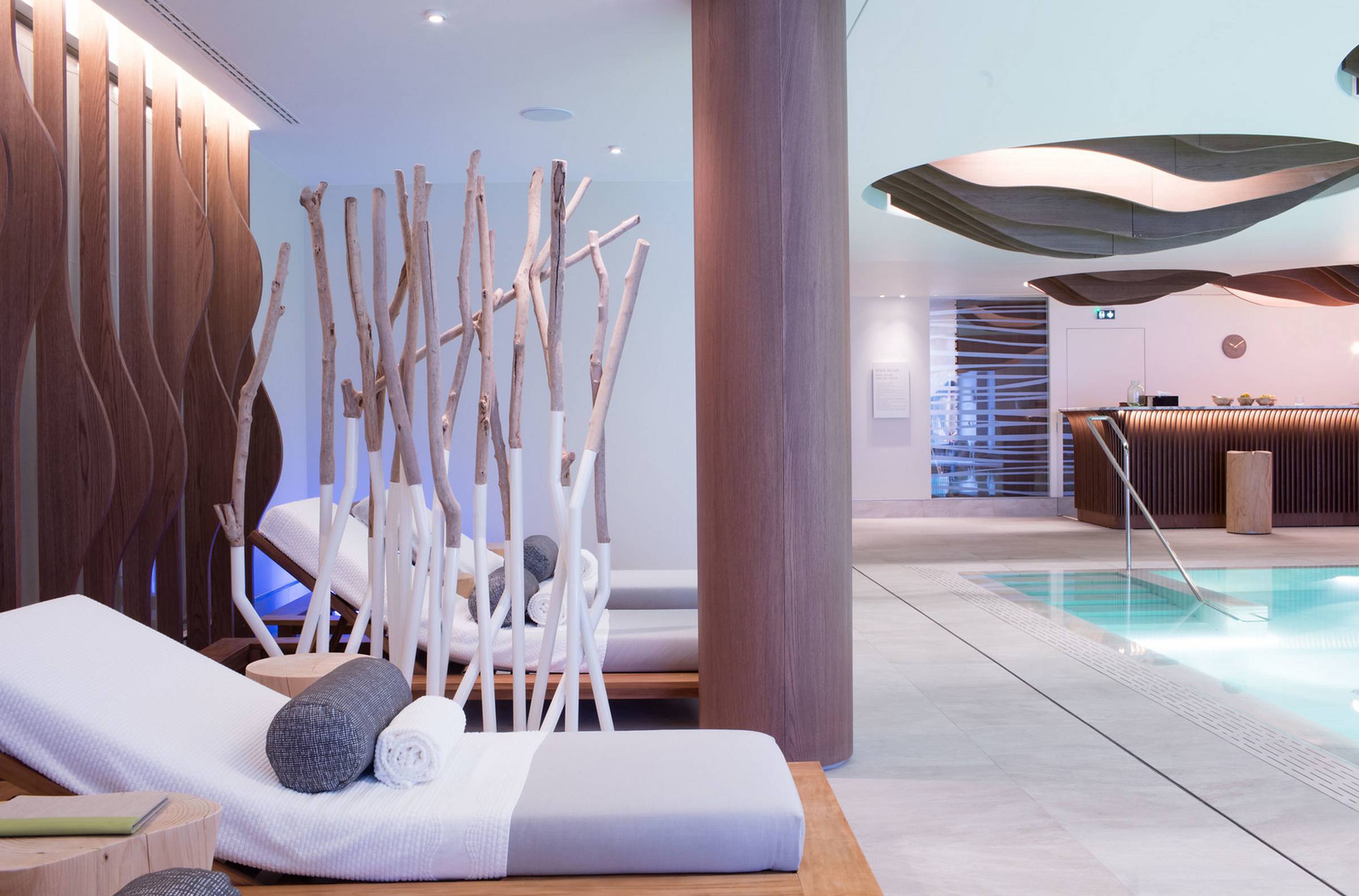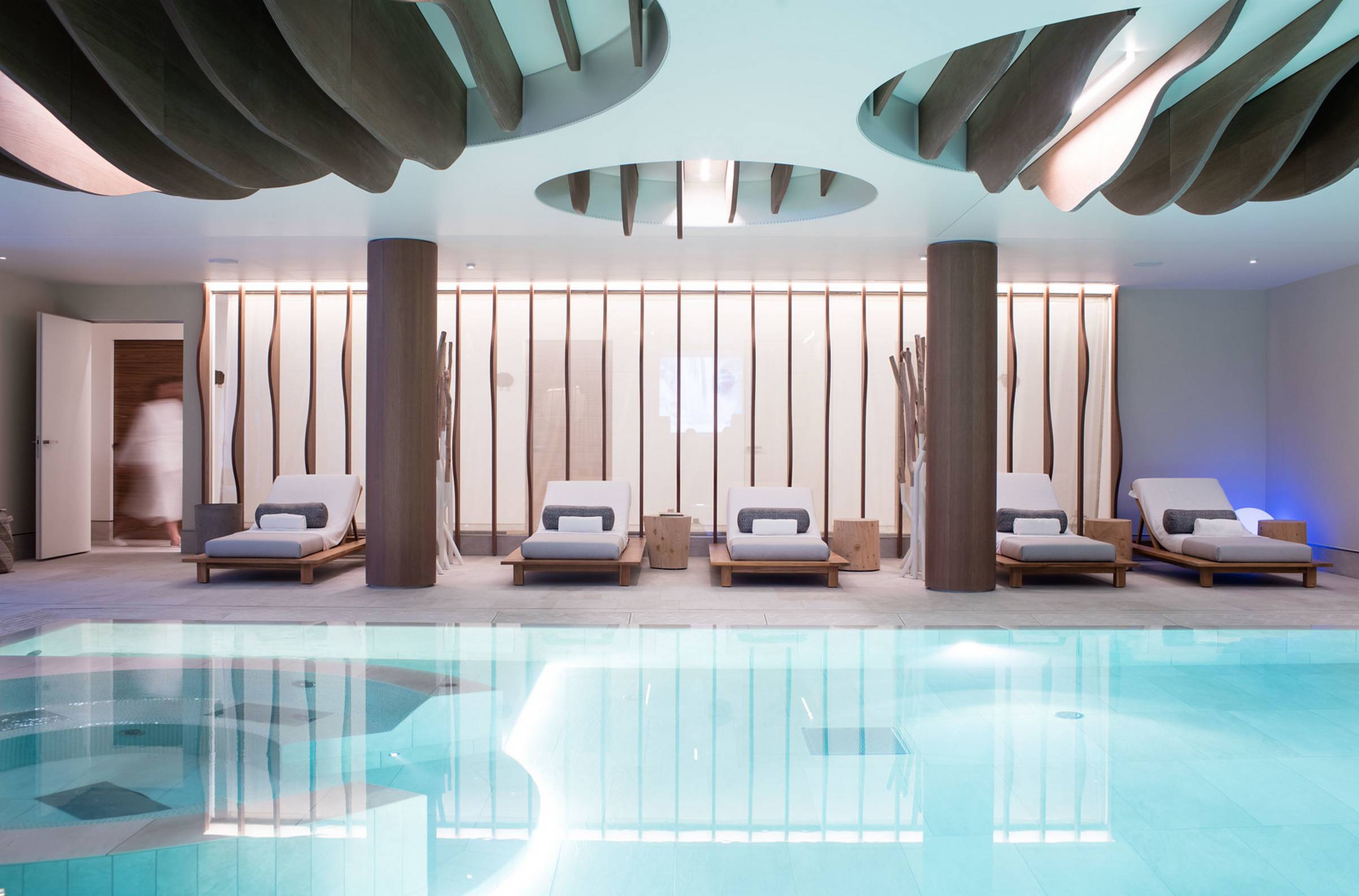 Six Senses Spa, is located in the Six Sense Residence in Courchevel 1850 ( France, Savoie), one of the most inviting places for Europeans to ski. It sits within the world’s largest lift-linked ski area, the Trois Vallées . The SPA offers residents and outside guests a welcome respite after an exhilarating day of skiing. The 1200 sqm spa features an indoor swimming pool with a relaxation area lit by natural light and an outdoor hot tub; there is also a vitality area with bio sauna, sauna, Kneipp path, rain shower and a steam room. The treatment area located close to the changing rooms includes five treatment rooms. A quiet juice bar in the pool area, completes this rejuvenating circuit. A gym and a studio for wellness classes such as yoga and meditation are open to guests. A completely unheard-of style for an alpine residence, inspired by snow waves and their organic shapes. With the interior architecture considered to ensure natural flow, privacy and space, the lighting, ambience and materials have all been meticulously selected to create a feeling of warmth, luxury and wellness.Courchevel is a huge challenge because it is not a one-dimension project. Our goal was to stand out from what you usually see in mountain style interiors in order to create something completely new and different.