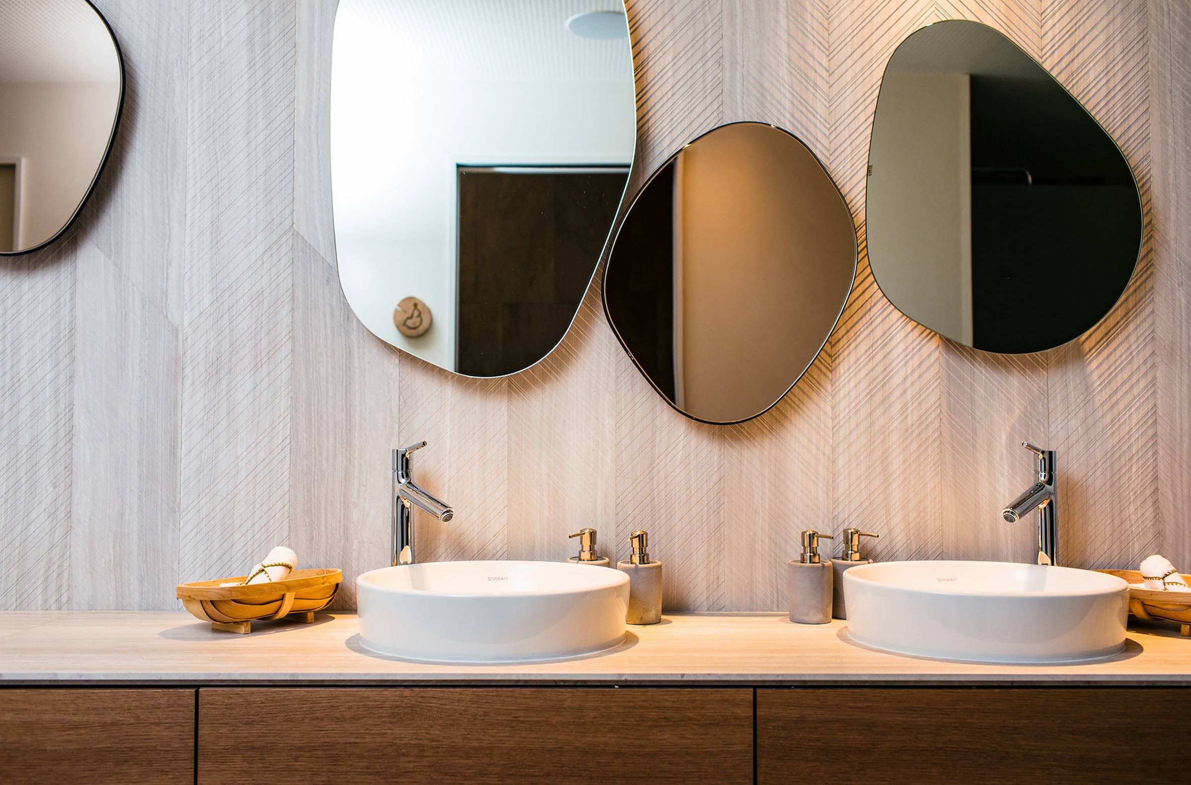It is a very high-end residence, with a modern feel to it combined with the warmth and cosiness typically found in an alpine chalet. Hence, we use traditional materials such as wood and stone, which look more contemporary with a special finish. We chose to combine the alpine style with a more urban style. It can be a difficult exercise to combine both styles. We often work with the technical engineers and equipment consultants involved in the project to adjust the layout of certain spaces and to refit them according to our design and the SPA operator needs.
